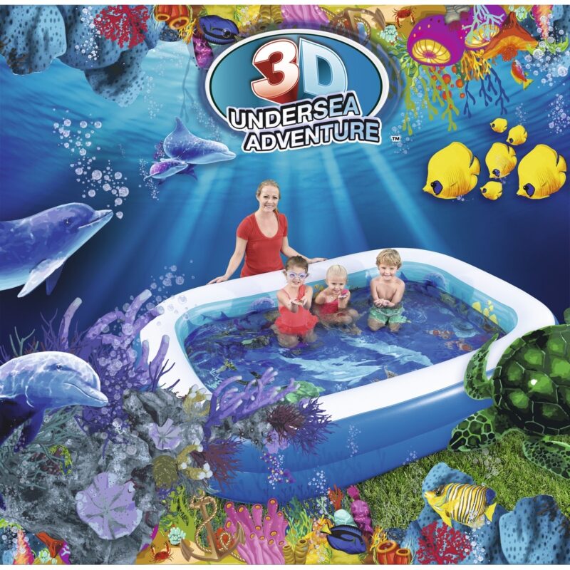 Nafukovací bazénik 3D nadchne každého milovníka vodných radovánok! Bazén má extrémne široké bočné steny a dva blokovacie rýchlouzávery. Balenie obsahuje 2 páry 3D okuliarov a hŕstku krištáľového pokladu. Toto leto bude 3D dobrodružstvo úplne novou zábavou! Ponorte sa hlboko do podmorského sveta a pripojte sa k lovu kryštálov.