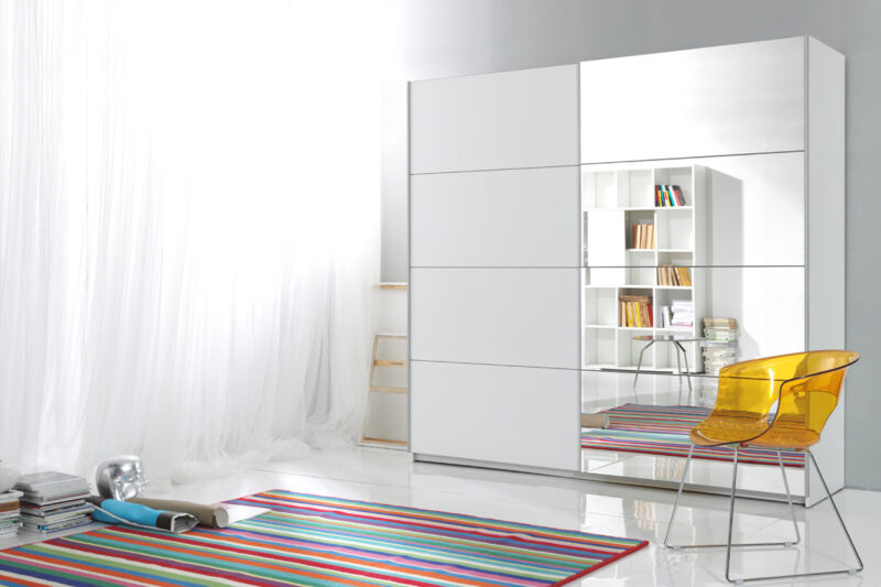 Šatníková skriňa BETKA ponúka množstvo úložného priestoru.V spojení s jej elegantným a moderným dizajnom sa stane neoddeliteľnou súčasťou vašej domácnosti. Posuvné dvere umožňujú ešte lepšie využitie priestoru a dobrú manipuláciu s nábytkom. Môžete si ich doplniť o funkciu tichého zatvárania (nie je súčasťou, potrebné doobjednať). Prevedenie skrine je v kombinácii lamino dosky a zrkadla, ktoré je umiestnené na celých jedných dverách. Týmto sa dosiahne efekt zväčšenia priestoru.Nábytok je v bielej farbe.Vnútro šatníkovej skrine je rozdelené na dve časti. Jedna časť je vešiaková a obsahuje 1 vešiakovú tyč a 1 poličku, umiestnenú v hornej časti skrine. Poličková časť obsahuje 4 vnútorné poličky. Skriňa BETKA je v ponuke vo viacerých farebných variantoch a prevedeniach.Nábytok sa dodáva v demonte.Rozmery(š/v/h): 150×210 x 61cm