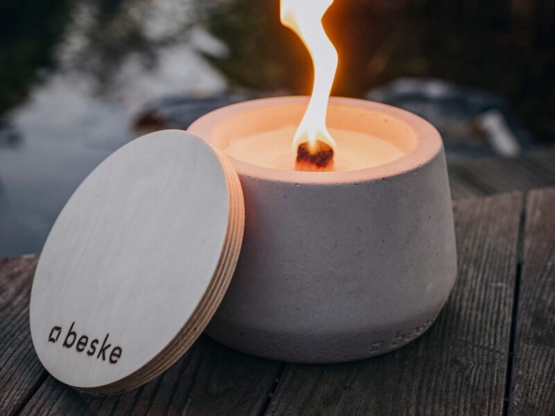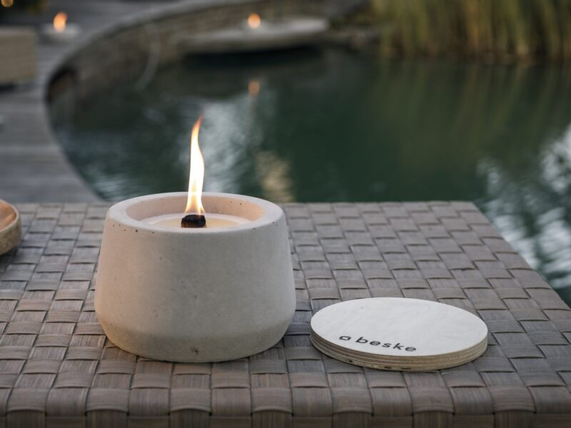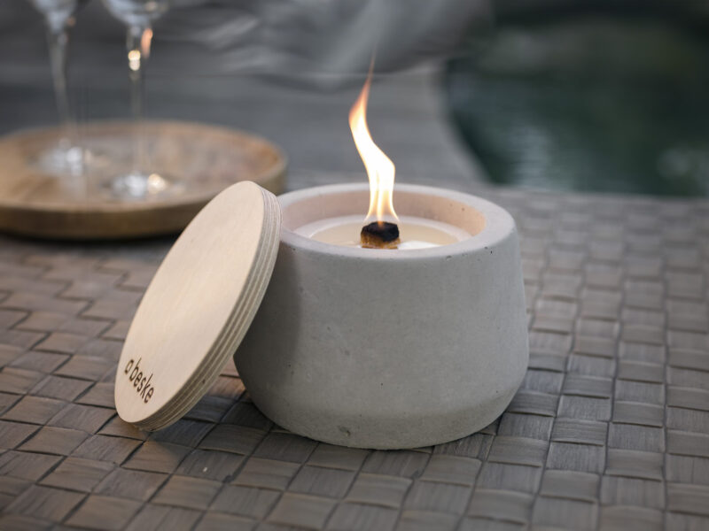 Dekoračný betónový svietnik, ktorý svojim ohňom a unikátnym dizajnom spríjemní každé posedenie.