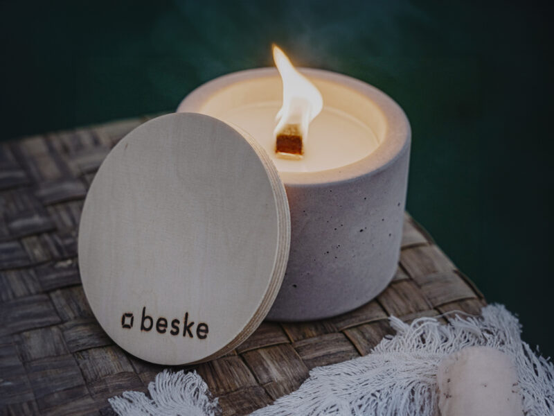 Dekoračný betónový svietnik, ktorý svojim ohňom a unikátnym dizajnom spríjemní každé posedenie.