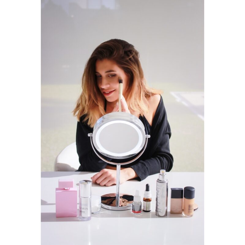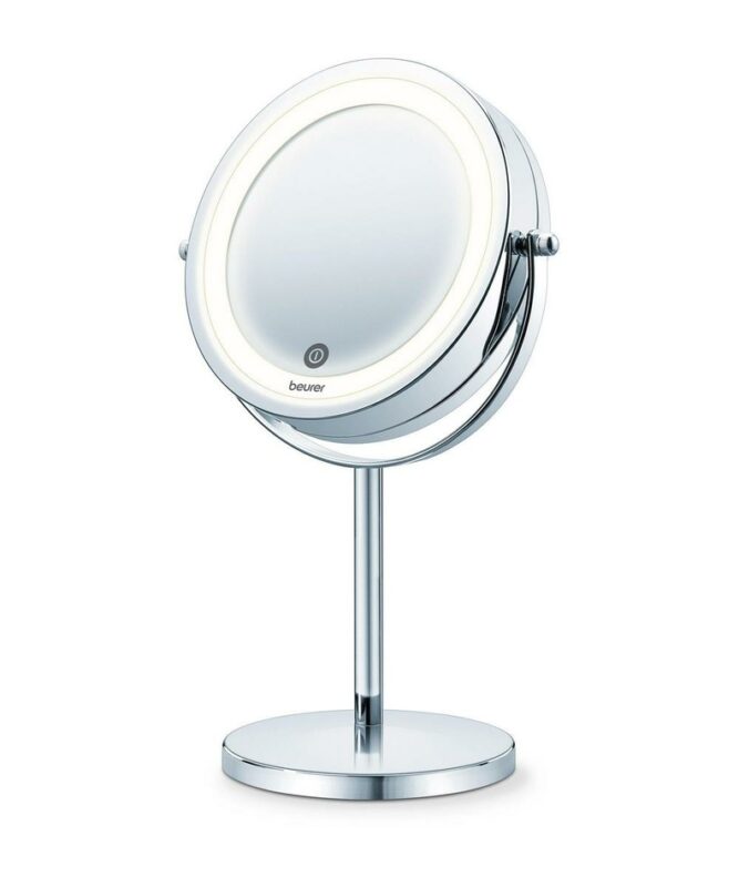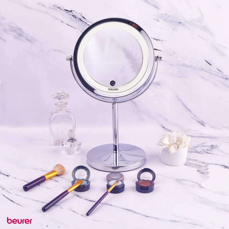 Bez obojstranného kozmetického zrkadla Beurer BEU-BS55 sa nezaobíde žiadna žena. Otočné okrúhle stolné zrkadlo vyniká moderným dizajnom lesklej striebornej farby, vysoko kvalitným chrómovým povrchom a množstvom skvelých funkcií.Vlastnosti: