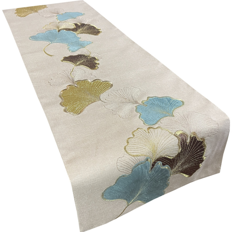 Béžová dekoračná štóla s motívom Ginkgo lístia Šírka: 35 cm | Dĺžka: 140 cm
