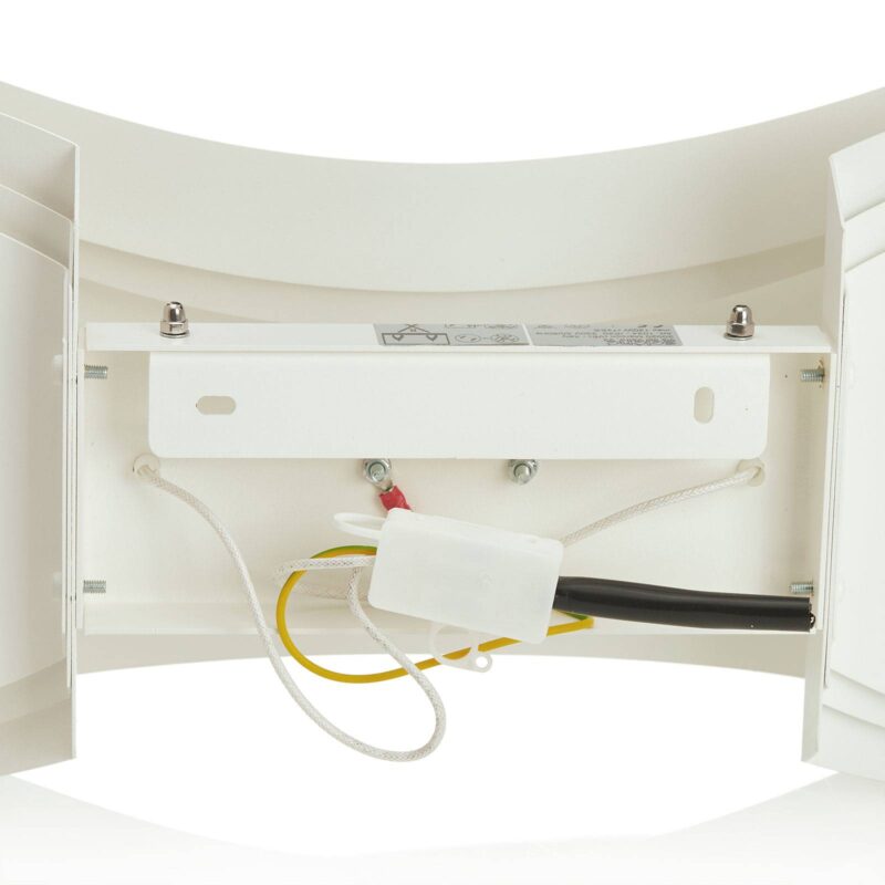 Štýlové nástenné svietidlo Ionica v bielej farbe Elegantný dizajn sa v nástennom svietidle Ionica spája s kvalitnou výrobnou technológiou. Moderná laserová technológia sa používa na rezanie oceľových pásikov rôznych veľkostí s presnosťou na bod. Tie sa ručne ukladajú na seba a formujú do elegantného dizajnu. Povrch je štýlovo natretý jemnou bielou farbou. Nástenné svietidlo Ionica obohatí vkusné interiéry a možno ho použiť v súkromných domoch, ako aj v hoteloch alebo reštauráciách.