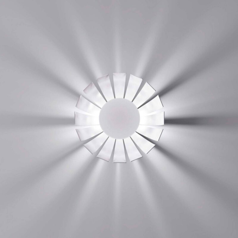 Fascinujúce hry svetla so stropným a nástenným svietidlom Loto Aj keď nie je osvetlené, svietidlo Loto z kovových pásikov vyzerá ako kvet, ale keď ho zapnete, naozaj rozkvitne v pravom zmysle slova: Vďaka nepriamemu osvetleniu, ktoré zabezpečujú integrované LED diódy, a charakteru tienidla sa na stene alebo strope objavujú odrazy svetla pripomínajúce slnečné lúče. Loto sa dá namontovať na strop aj na stenu. S niekoľkými svietidlami rôznych veľkostí a farieb môžete dokonca vytvoriť skutočné svetelné umelecké dielo.