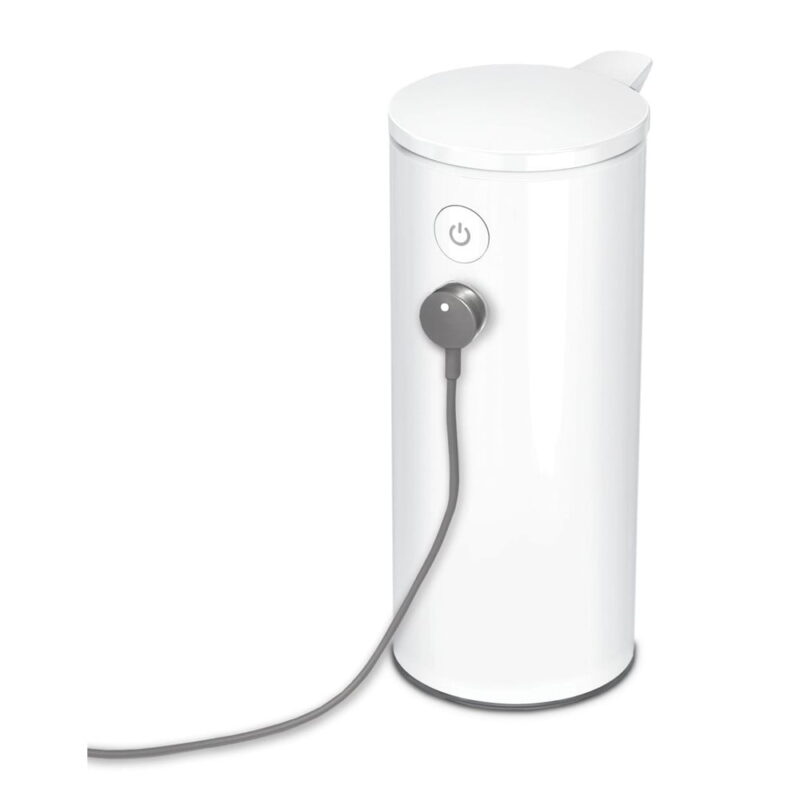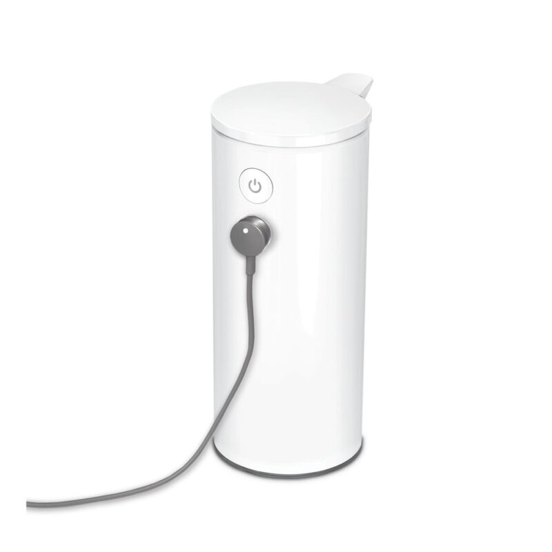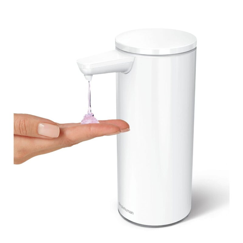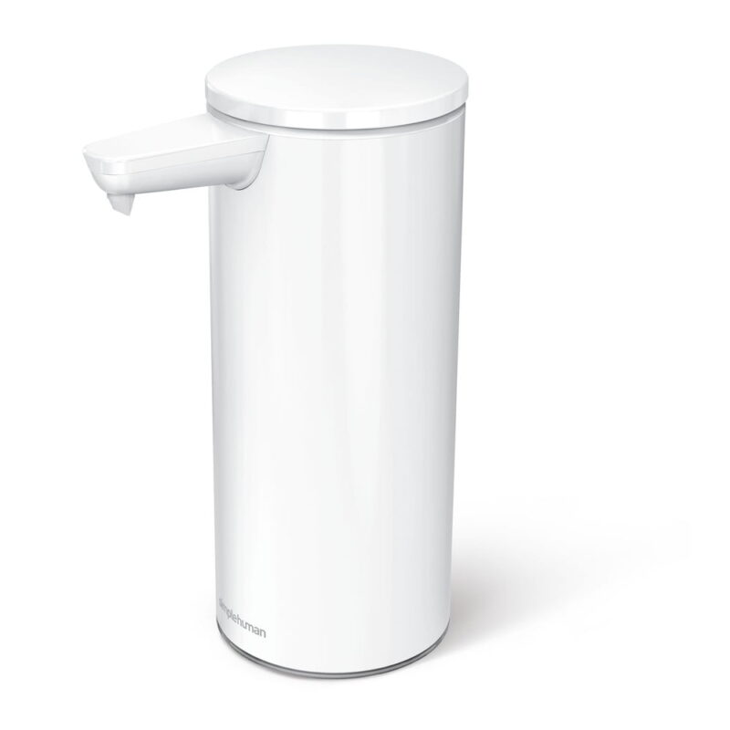Biely bezdotykový oceľový dávkovač mydla 266 ml – simplehuman