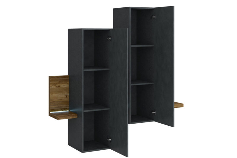 Vitrína s poličkou BILSBY patrí ku prvkom obývacieho sektoru BILSBY, z ktorých si vyskladáte dizajnovú a funkčnú obývaciu stenu. Je vhodná do moderných a nadčasových interiérov.Vitrína je vyrobená z LTD dosky, ktorá je nenáročná na údržbu. Okraje nábytku sú chránené ABS hranami. Je vo farebnom prevedení: appenzeller, matera.Vitrína je dvojdverová, závesná. V každej časti sa nachádzajú dve police. Tiež disponuje praktickou policou na uloženie rôznych dekorácií, kníh a podobne.Rozmery (š,h): 152 x 35 cm.LED osvetlenie je v cene vitríny!BILSBY je kolekcia moderného a štýlového obývacieho nábytku, ktorá vás zaujme svojim elegantným a zároveň jednoduchým vzhľadom. Je vhodná do moderných interiérov menších aj väčších rozmerov. Charakteristickou črtou kolekcie BILSBY je asymetrický tvar jednotlivých prvkov, ktorý je nielen funčkný ale stane sa tiež dekoráciou vašej obývačky.Dodávame v demontovanom stave.