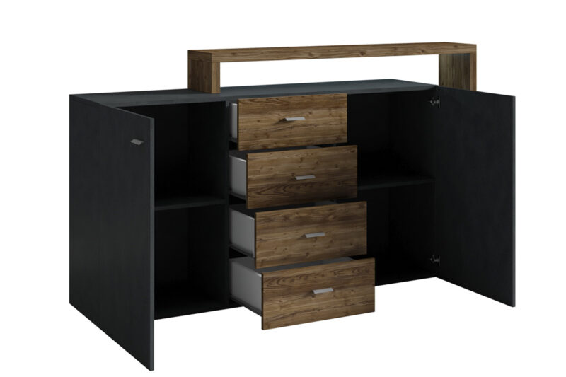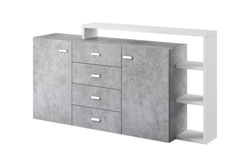 Kombinovaná komoda BILSBY patrí ku prvkom obývacieho sektoru BILSBY, z ktorých si vyskladáte dizajnovú a funkčnú obývaciu stenu. Je vhodná do moderných a nadčasových interiérov.Komoda je vyrobená z LTD dosky, ktorá je nenáročná na údržbu. Okraje nábytku sú chránené ABS hranami. Je vo farebnom prevedení: biela, betón colorado.Komoda je dvojdverová. V každej časti sa nachádza jedna polica. V strednej časti sa nachádzajú štyri praktické zásuvky. Disponuje tiež nadstavbou s otvorenými úložnými priestormi, kam si môžete uložiť knihy, dekorácie a podobne.Rozmery (š,v,h): 180 x 80 x 37 cm.BILSBY je kolekcia moderného a štýlového obývacieho nábytku, ktorá vás zaujme svojim elegantným a zároveň jednoduchým vzhľadom. Je vhodná do moderných interiérov menších aj väčších rozmerov. Charakteristickou črtou kolekcie BILSBY je asymetrický tvar jednotlivých prvkov, ktorý je nielen funčkný ale stane sa tiež dekoráciou vašej obývačky.Dodávame v demontovanom stave.
