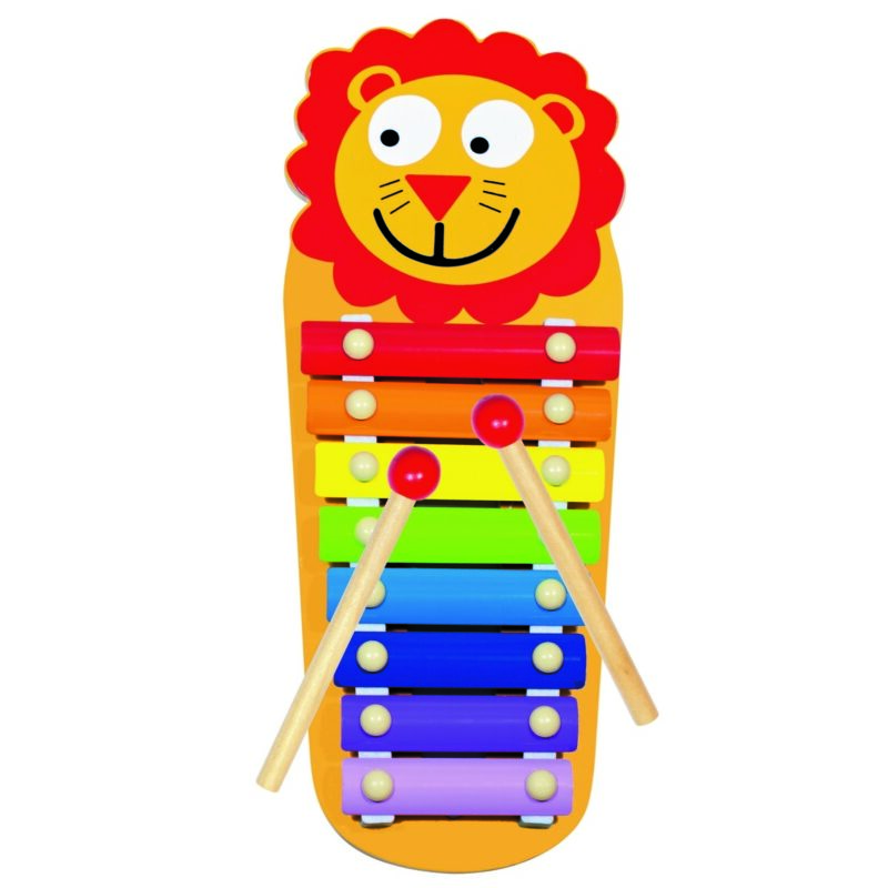 Tento xylofón s roztomilým dizajnom levíka má 8 kovových zvukových plátov. Ponúka deťom príležitosť zoznámiť sa so základmi hudby a rozvíjať svoj hudobný talent. Je tak ideálnou hračkou pre prvé detské hudobné kroky. Ošetrený nezávadnou farbou, zaoblené rohy a hladké povrchy zaisťujú bezstarostné hudobné chvíľky.