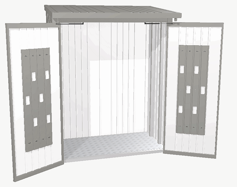 Výška: 1990 – v najvyššom mieste, Šírka: 1570, Hĺbka / dĺžka: 1020, Hmotnosť: 40, Objem: 2,1, Materiál: žiarovo pozinkovaný oceľový plech, Farba: sivý kremeň metalíza