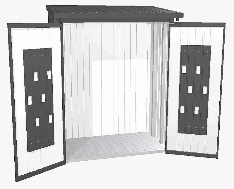 Hliníková podlahová doska, zadná stena a dverové set nie sú súčasťou drevárne, možno doobjednať v súvisiacich produktoch.Prednosti: