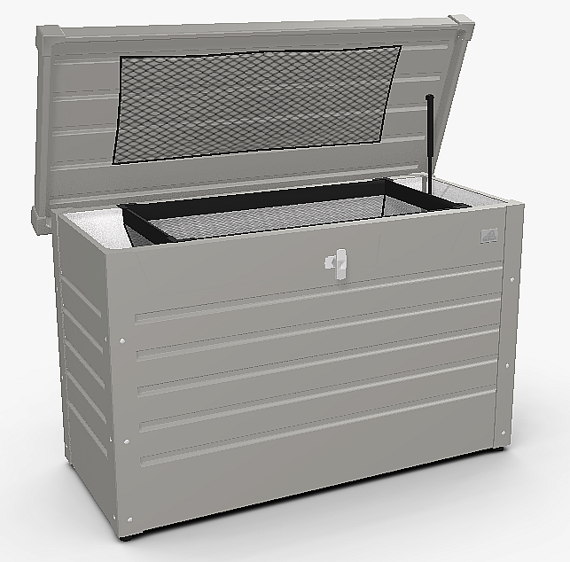 Sieť na veko, paket-box kit a závesný kôš nie sú súčasne skrine FreizeitBox, možno doobjednať v súvisiacich produktoch.Účelne skryje všetko, pre čo nemáte žiadny vhodný skladovací priestor. Ideálna na uloženie sedákov, ležadiel, skladacích stoličiek, hračiek, športových a kempingových doplnkov.prednosti: