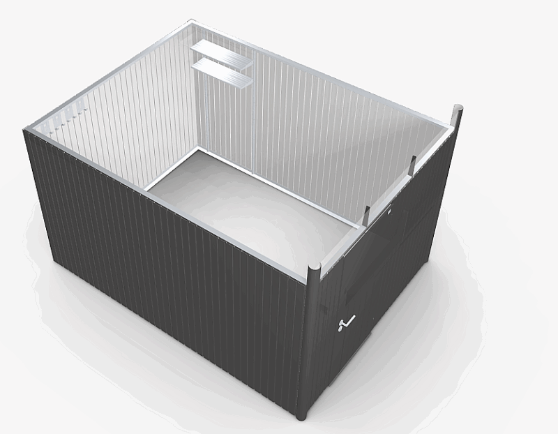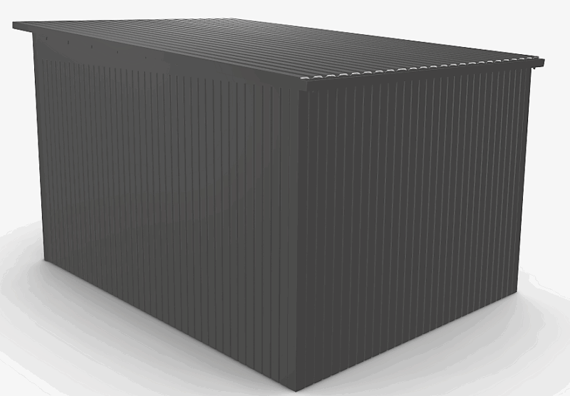 Výška: 2220, Šírka: 2600, Hĺbka / dĺžka: 3800, Hmotnosť: 242, Objem: 17,2, Materiál: pozink plech, ušlechtilá ocel, Farba: tmavo šedá metalíza, Určen pre: vonkajšie použitie, Plocha: 260 x 340