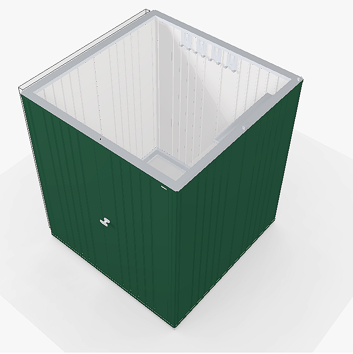 Výška: 1960, Šírka: 1720, Hĺbka / dĺžka: 1560, Hmotnosť: 106, Objem: 4,2, Materiál: pozink plech, ušlechtilá ocel, Farba: tmavo zelená, Určen pre: vonkajšie použitie, Plocha: 172 x 156