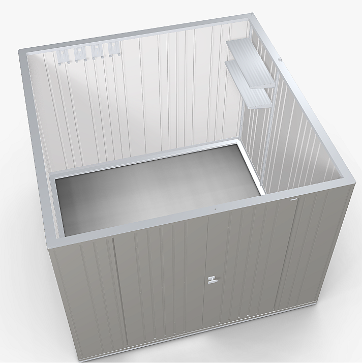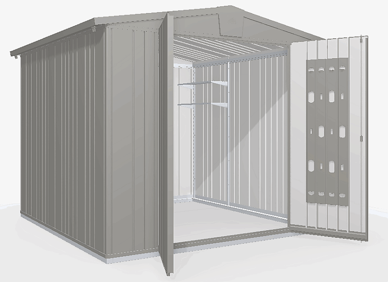 Výška: 2030, Šírka: 2440, Hĺbka / dĺžka: 2280, Hmotnosť: 155, Objem: 9,4, Materiál: pozink plech, ušlechtilá ocel, Farba: sivý kremeň metalíza, Určen pre: vonkajšie použitie, Plocha: 244 x 228