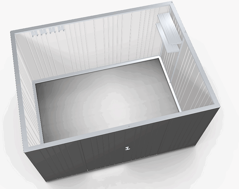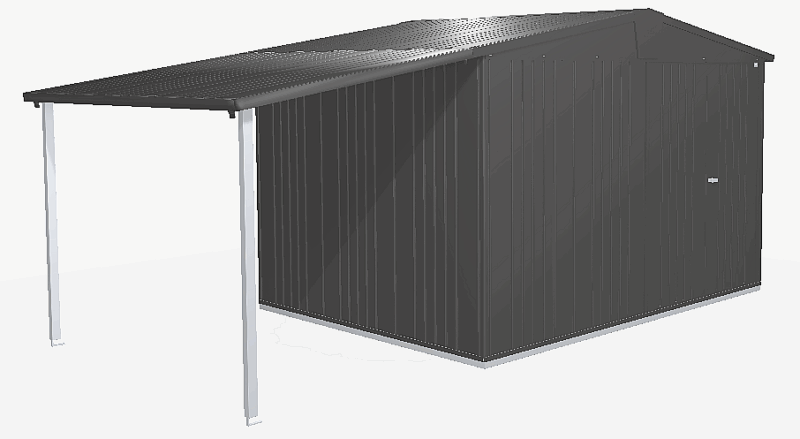 Výška: 2090, Šírka: 3160, Hĺbka / dĺžka: 2280, Hmotnosť: 187, Objem: 12,6, Materiál: pozink plech, ušlechtilá ocel, Farba: tmavo šedá metalíza, Určen pre: vonkajšie použitie, Plocha: 316 x 228