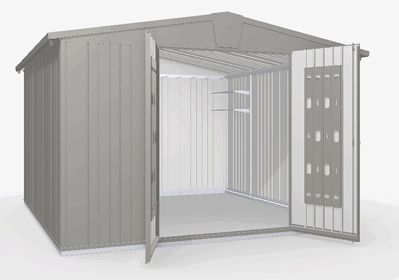 Výška: 2090, Šírka: 3160, Hĺbka / dĺžka: 3000, Hmotnosť: 220, Objem: 16,7, Materiál: pozink plech, ušlechtilá ocel, Farba: sivý kremeň metalíza, Určen pre: vonkajšie použitie, Plocha: 316 x 300