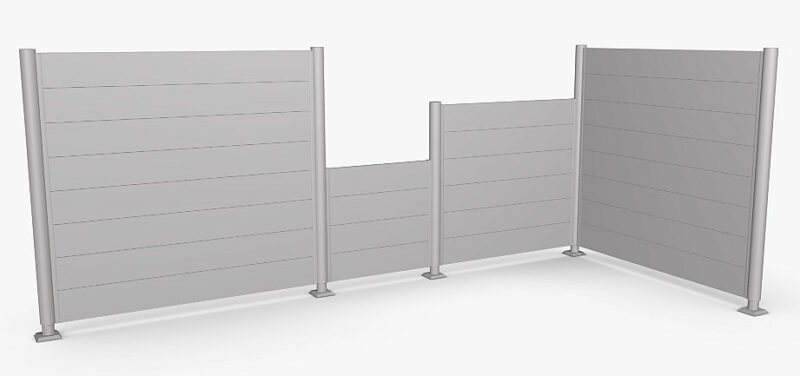 Obsahuje 8 kovových panelov a dve vodiace lišty na montáž medzi dva stĺpiky zásteny pre ochranu súkromia.
