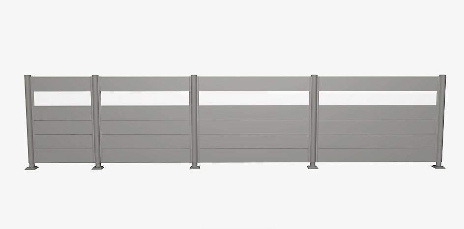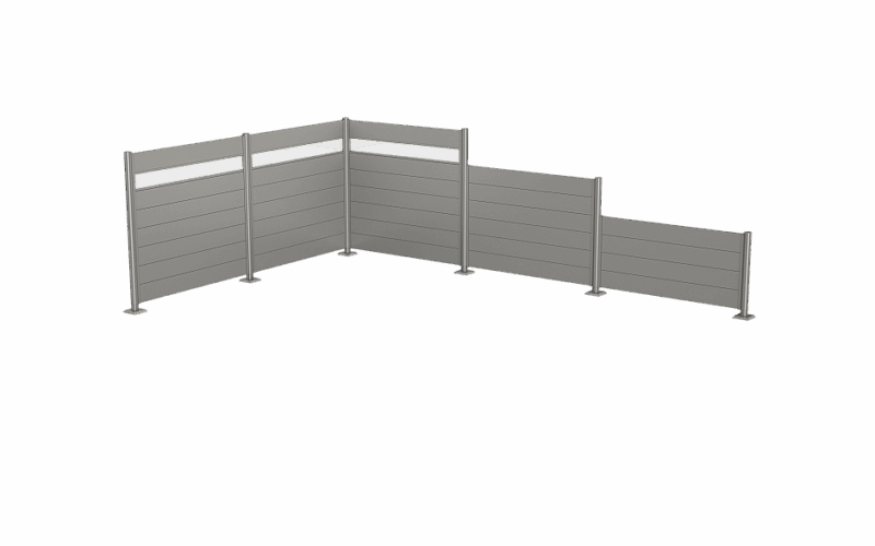Obsahuje 5 kovových panelov, 1 panel z akrylového skla a dve vodiace lišty na montáž medzi dva stĺpiky zásteny pre ochranu súkromia.