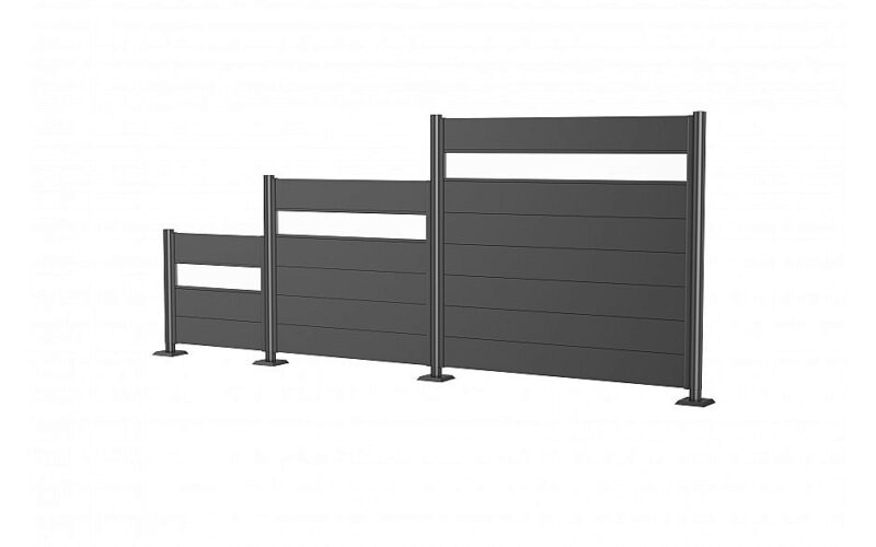 Obsahuje 5 kovových panelov, 1 panel z akrylového skla a dve vodiace lišty na montáž medzi dva stĺpiky zásteny pre ochranu súkromia.