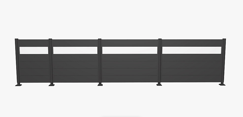 Obsahuje 5 kovových panelov, 1 panel z akrylového skla a dve vodiace lišty na montáž medzi dva stĺpiky zásteny pre ochranu súkromia.