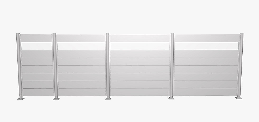 Obsahuje 7 kovových panelov, 1 panel z akrylového skla a dve vodiace lišty na montáž medzi dva stĺpiky zásteny pre ochranu súkromia.