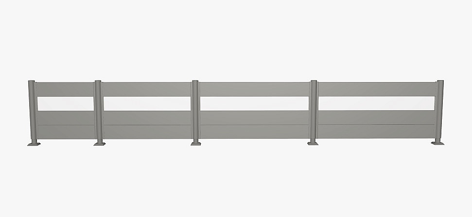 Obsahuje 3 kovové panely, 1 panel z akrylového skla a dve vodiace lišty na montáž medzi dva stĺpiky zásteny pre ochranu súkromia.