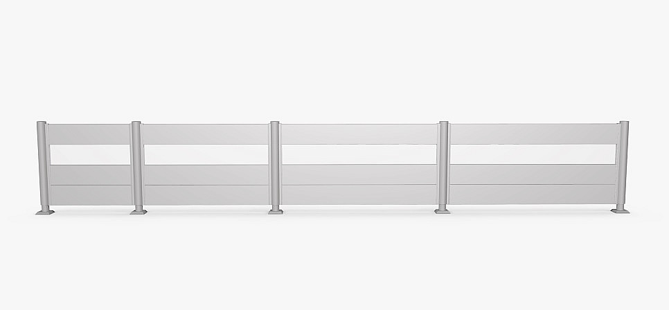 Obsahuje 3 kovové panely a 1 panel z akrylového skla, dve vodiace lišty na montáž medzi dva stĺpiky zásteny pre ochranu súkromia.