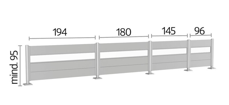 Ku každej zástene je nutné objednať stĺpiky, pri ktorých je možnosť voľby na ukotvenie, viď nižšie.