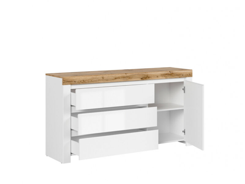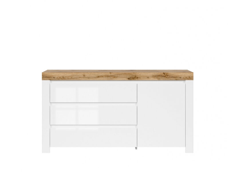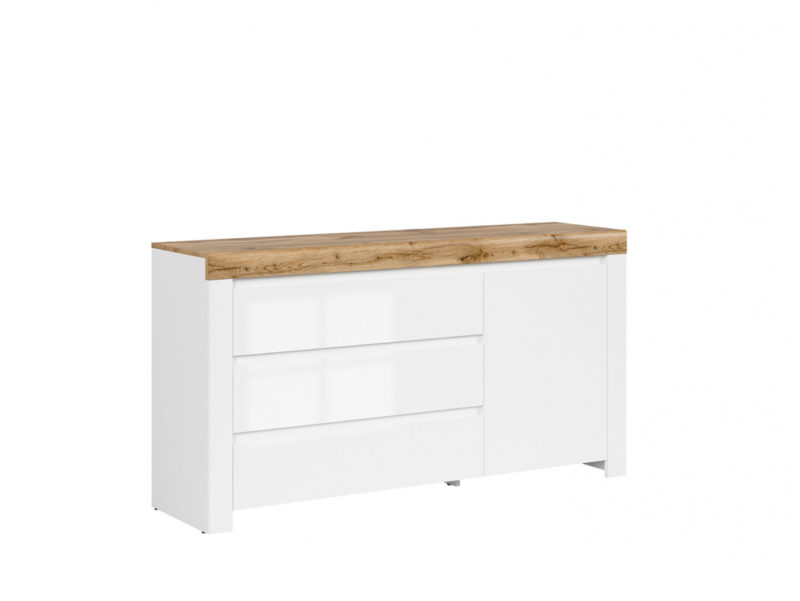 BLACK RED WHITE Holten KOM1D3S komoda biela / dub wotan / biely lesk