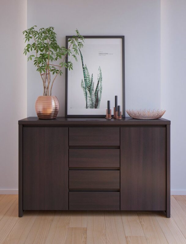 Komoda KASPIAN KOM2D4S je praktickým nábytkom vhodným do obývačky či jedálne. Jej unikátny charakter zdôrazňuje dyha s viditeľným drevom. Rôzne osobné predmety môžete bezpečne uschovať do štyroch zásuviek. Skrinky po oboch stranách komody obsahujú dve police. Moderné bez úchytkové otváranie…