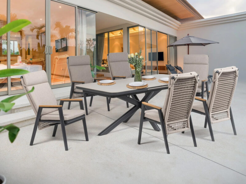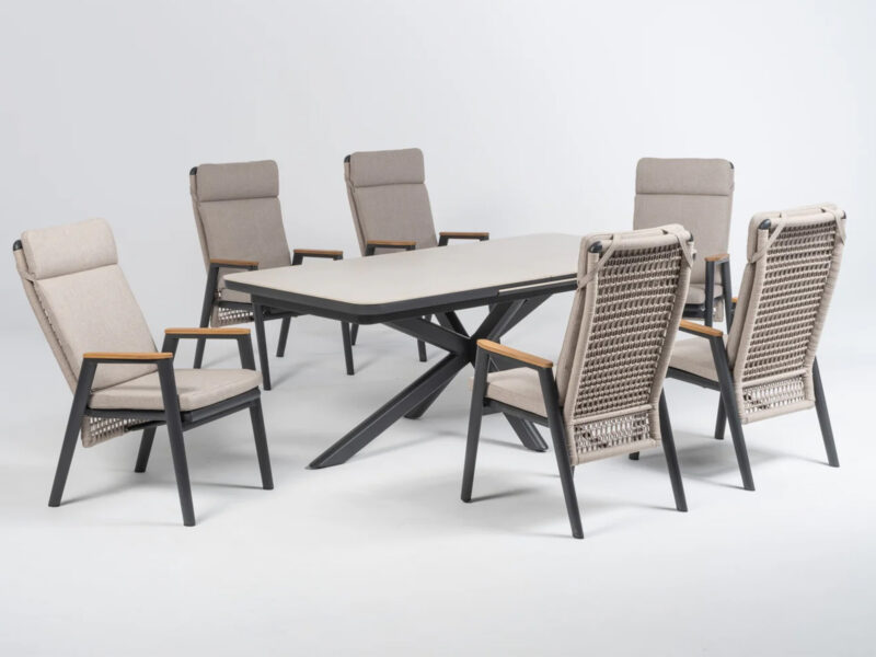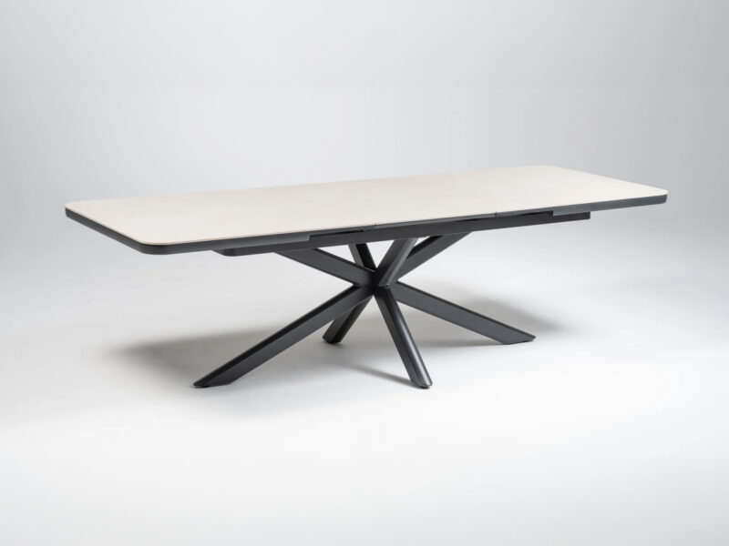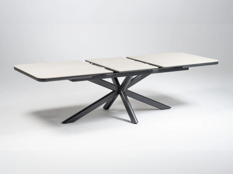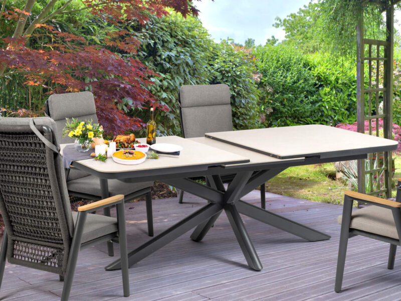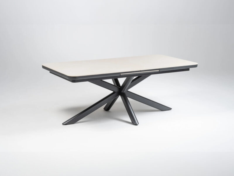 Rozťahovací jedálenský stôl Boat Flex s hliníkovým rámom a doskou zo sintrového kameňa ponúka elegantný dizajn a možnosť predĺženia z 200 cm na 260 cm pre maximálny komfort.