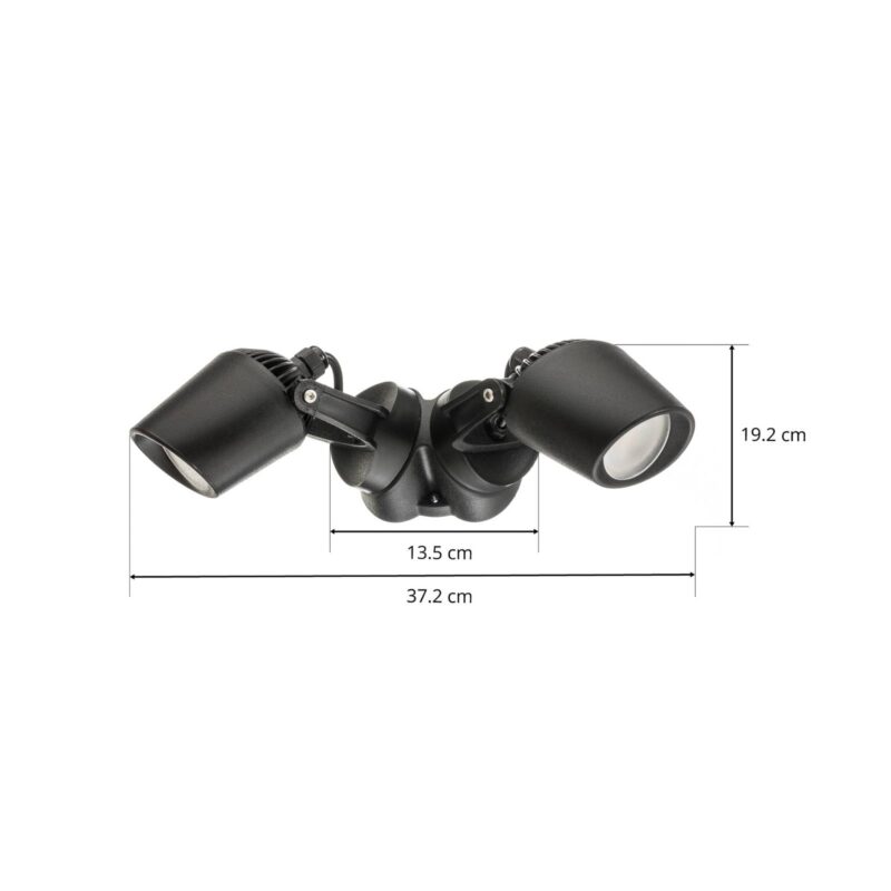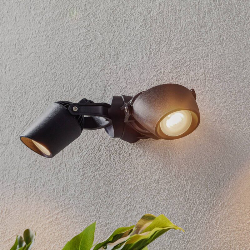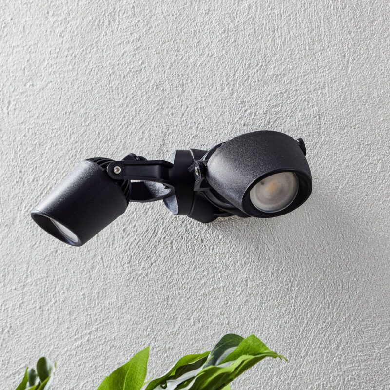 LED vonkajší reflektor Minitommy–EL na montáž na stenu alebo podlahu s dvomi otočnými hlavami Dve hlavy nástenného svietidla Minitommy–EL sú vďaka otočnému nadstavcu nielen flexibilné, pokiaľ ide o ich vyrovnanie, ale je možné podľa potreby upraviť aj teplotu farby. Z tohto dôvodu sú dve žiarovky LED GU10 vybavené malým spínačom, ktorý umožňuje výber teplej bielej 2 700 K alebo univerzálnej bielej 4 000 K. LED svietidlo vybavené montážnou základňou je vyrobené z robustnej liatej živice s matnými polykarbonátovými difúzormi a silikónovými tesneniami. – Dodávka vrátane vymeniteľnej žiarovky