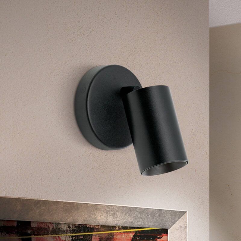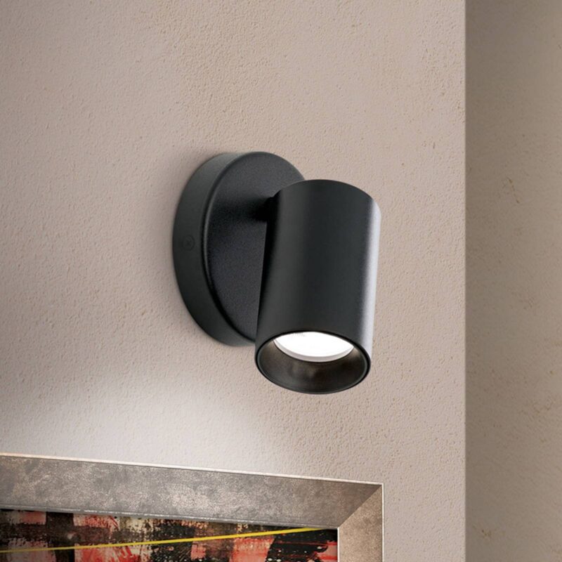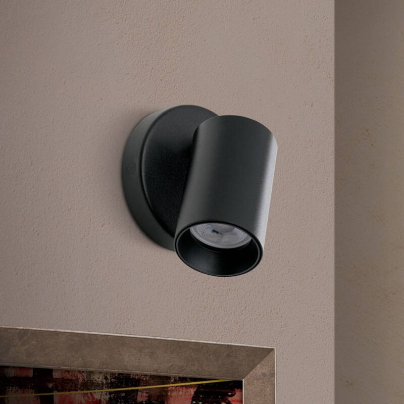 Čierny reflektor Sean na montáž na stenu alebo strop Tento malý, diskrétny jediný bod Sean s okrúhlym držiakom sa dá ideálne použiť napríklad na osvetlenie obrazov alebo na zvýraznenie rastlín. Môže byť pripevnený buď na stenu alebo na strop. Celý povrch spotu, vyrobený z hliníka, je potiahnutý matnou čiernou farbou a predstavuje tak flexibilný svetelný prvok, ktorý je možné ľahko integrovať do rôznych štýlov. Bodové svetlo je možné otáčať a natáčať tak, aby bolo možné ho podľa potreby zarovnať. Musí sa použiť žiarovka GU10. (pozri príslušenstvo)