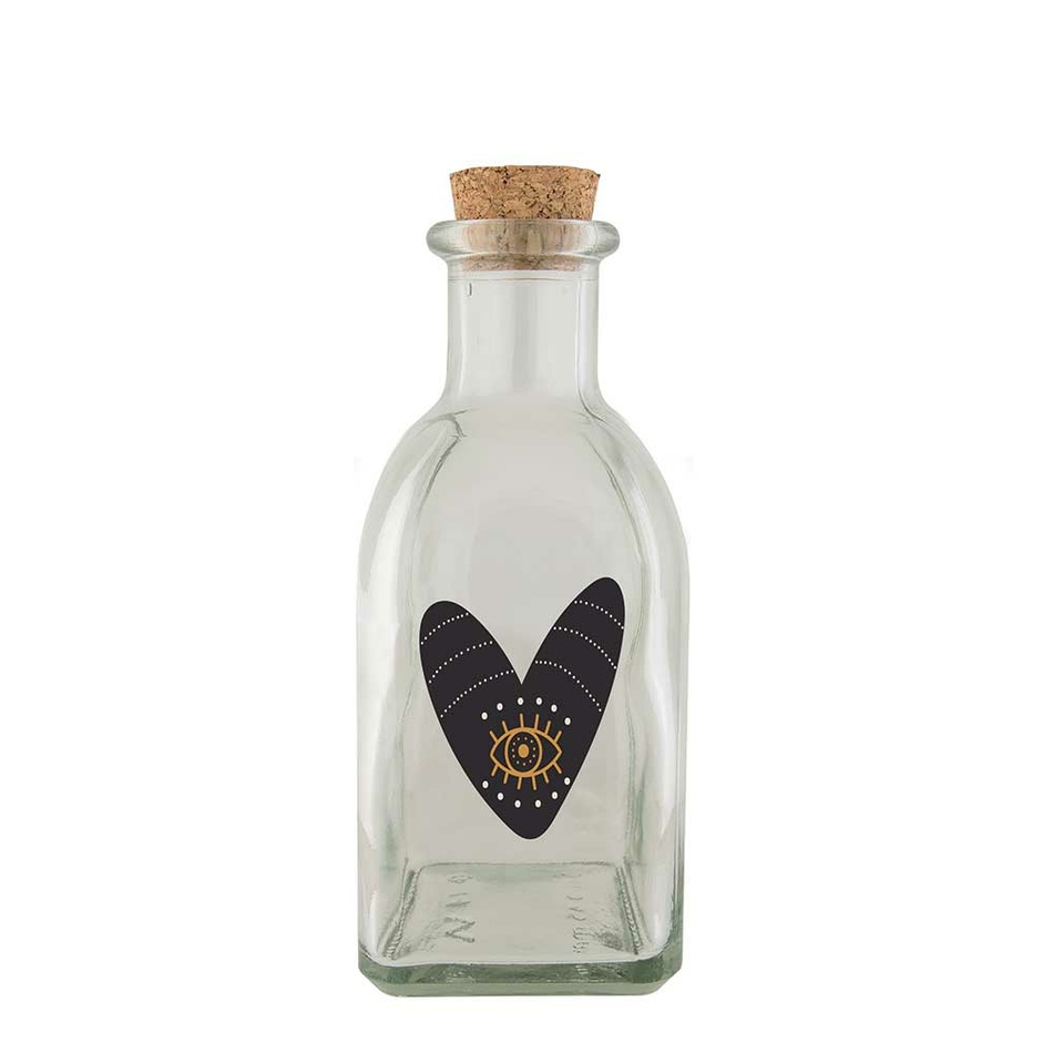 Sklenená fľaša s korkovým uzáverom s objemom 250 ml s grafickou potlačou. Ideálna ako interiérová dekorácia.