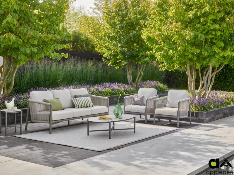 Okrúhly príručný stolík Bora Bora z keramiky a hliníka v decentnom sfarbení od značky Apple Bee.