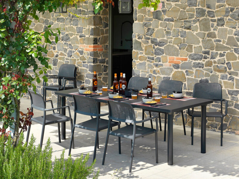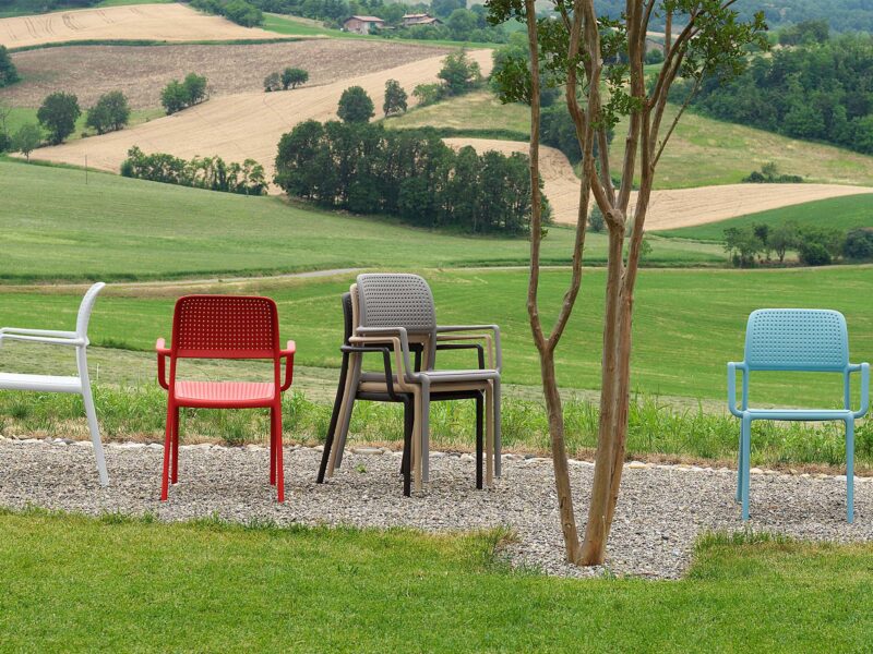 Exteriérová stolička s podrúčkami Bora je odolná a praktická pre vonkajšie prostredie. Je navrhutá vo vzdušnom dizajne, perfektná pre záhrady, terasy, hotely, reštaurácie a kaviarne.
