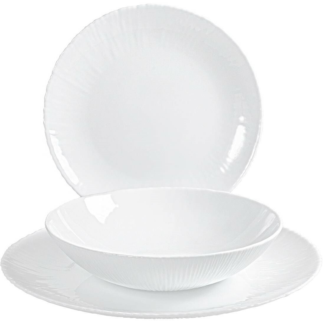 Dajte svojmu stolovaniu nádych elegantného a kultivovaného štýlu. Tradičná jedálenská sada Coconut v bielom prevedení obsahuje všetko potrebné na prestretie stola. Vďaka čistým tvarom a klasickému bielemu prevedeniu bude nestarnúcim doplnkom vašej kuchyne. Sada je vyrobená z opálového skla – tvrdené sklo, ktoré je 100x odolnejšie a trvanlivejšie než klasické. Taniere v troch veľkostiach vás navyše potešia svojou praktickosťou a nenáročnou údržbou.Súprava obsahuje: