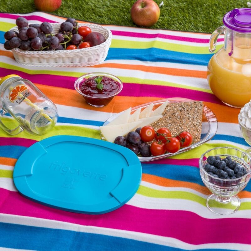 Ak si chcete pripraviť párty občerstvenie vopred, Frigoverre Basic Plate s vekom je perfektnou voľbou. Má veľký priemer 27 centimetrov. Môžete ho teda použiť mnohými spôsobmi. Na občerstvenie, predjedlá, dezerty a teplé alebo studené jedlá. Ak ešte niečo zostáva, môžete tanier odložiť späť do chladničky.Vďaka vysokej kvalite skla je tento výrobok extrémne odolný a odolný voči teplotným zmenám. Môžete si teda byť istí, že vo vašej domácnosti bude slúžiť dlho. Nebude teda problém v mikrovlnnej rúre (bez veka) niečo zahriať alebo zmraziť na neskôr. Nádoba je vhodná do umývačky (bez veka). Tesné uzavretie chráni jedlo pred stratou čerstvosti. To je spôsobené vhodne profilovanými hranami sklenenej aj plastovej časti.