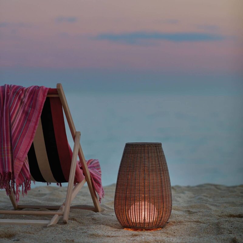 Dizajnové terasové svietidlo Amphora od spoločnosti Bover je vhodné na vonkajšie aj vnútorné použitie Jeho názov pripomína staroveké hlinené hrnce terakotovej farby a jeho baňatý tvar sa odráža aj v terasovom svietidle Amphora. Dizajnéri Alex Fernández Camps a Gonzalo Milà sa inšpirovali práve týmito nádobami a pre španielskeho výrobcu Bover vytvorili svietidlo, ktoré premení terasy a balkóny na miesto plné tepla. Vďaka svojmu dekoratívnemu a útulnému vzhľadu je Amphora vhodná aj na použitie v interiéri. Dizajnu dominuje baňaté telo v krysom vzhľade, ktoré je vyrobené z polyetylénu a ručne tkané. Vnútri sa nachádza biela plastová guľa, ktorá chráni dve zásuvky E27 pred poveternostnými vplyvmi. Guľa slúži aj ako akýsi difúzor, ktorý blokuje svetlo zo žiaroviek a vytvára mäkké a rovnomerné rozptýlené svetlo. Tkané tienidlo spočíva na trojnohom hliníkovom ráme, ktorý zabezpečuje potrebnú stabilitu.