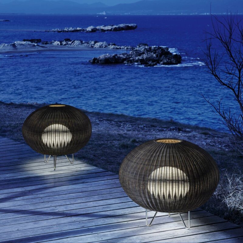 Inšpirované morským ježkom – terasové svietidlo Garota P/02 Garota P/02 je exkluzívny svetelný objekt, ktorý sľubuje atmosférické svetlo a rovnako stredomorskú atmosféru vo vonkajšom priestore. Spôsobuje to špeciálny dizajn tienidla, ktoré je upevnené na jemnom trojnohom ráme. To v kombinácii s 380 cm dlhým prívodným káblom zaručuje variabilné umiestnenie na terase alebo balkóne. Tienidlo, ktoré je zároveň hlavným bodom dizajnu, bolo starostlivo ručne utkané z hnedých syntetických vlákien odolných voči poveternostným vplyvom, vďaka čomu je skutočným unikátom. Svetlo je generované vo vnútri tienidla dvoma žiarovkami E27 (pozri príslušenstvo) a je uzavreté saténovou polyetylénovou elipsou, ktorá zaručuje homogénny rozptyl svetla. Dvaja dizajnéri Gonzalo Milá & Alex Fernández Camps sa pri navrhovaní lampy inšpirovali morským ježkom, čo sa odráža v tvare a tiež v tvorbe tieňa lampy. Vyrába ho renomovaný výrobca svietidiel Bover, ktorý vyrába svietidlá v Barcelone od roku 1996 a zostáva verný svojej hlavnej zásade nadčasového dizajnu v spojení s najvyššou kvalitou.