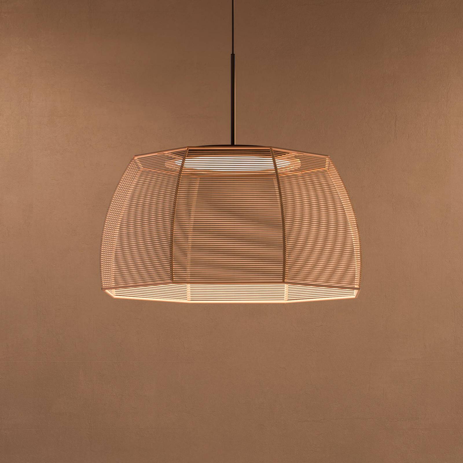 Závesné svietidlo Tanit LED s ručne tkaným tienidlom Závesné svietidlo Tanit LED je vhodné na ambientné alebo plošné osvetlenie v rôznych miestnostiach, ako je obývacia izba, jedáleň, chodba a spálňa. Integrovaný svetelný zdroj LED poskytuje atmosférické, teplé biele svetlo na útulné osvetlenie okolia. Závesné svietidlo Tanit LED, symbol sofistikovaného dizajnu, kombinuje vysokokvalitné materiály, ako je hliník a bavlna, a vytvára tak harmonický celkový vzhľad – externe stmievateľné (TRIAC)