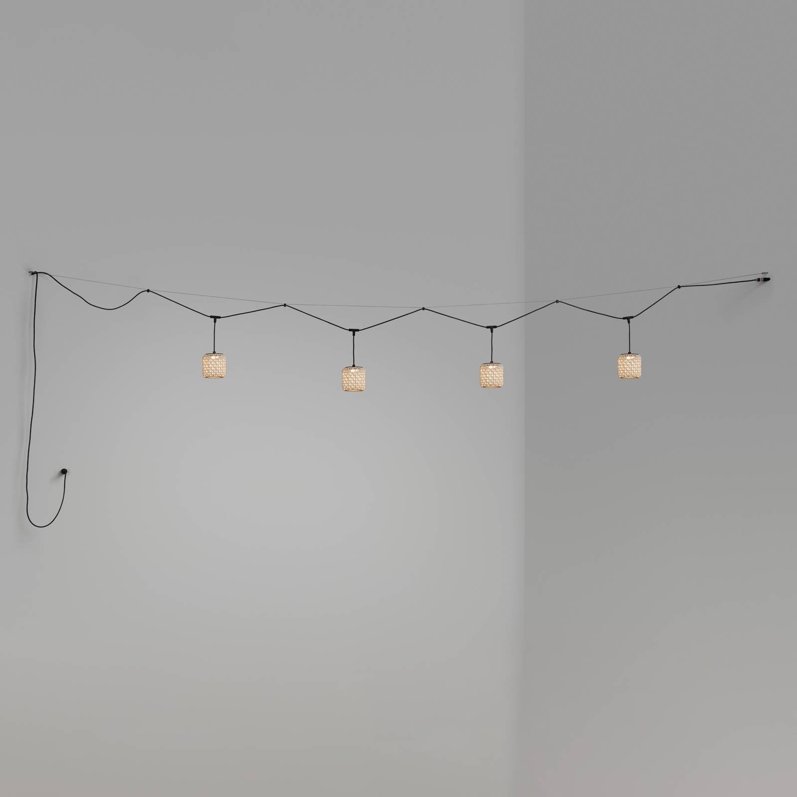 Štyri závesné svietidlá na jednom napájacom vedení: „Reťaz svetiel“ Nans na vonkajšie použitieModel Nans S/16/4L je veľmi zvláštne závesné svietidlo, pretože je vlastne zmesou svetelnej reťaze a závesného svietidla, pričom Nans nemá len jedno závesné svietidlo, ale štyri. Pomocou tejto závesnej svetelnej reťaze možno mimoriadne rafinovane a štýlovo osvetliť vonkajšie priestory – či už na terase, na balkóne, kryté alebo otvorené. Dôležité je len to, aby sa v blízkosti nachádzala zásuvka na napájanie svetiel. Nans je model z domu Bover z Barcelony. Túto sériu svietidiel na vonkajšie použitie navrhla samotná zakladateľka Joana Bover, ktorá tak vnáša atmosféru svojej rodnej Barcelony a Stredozemného mora do domovov mnohých ďalších ľudí.