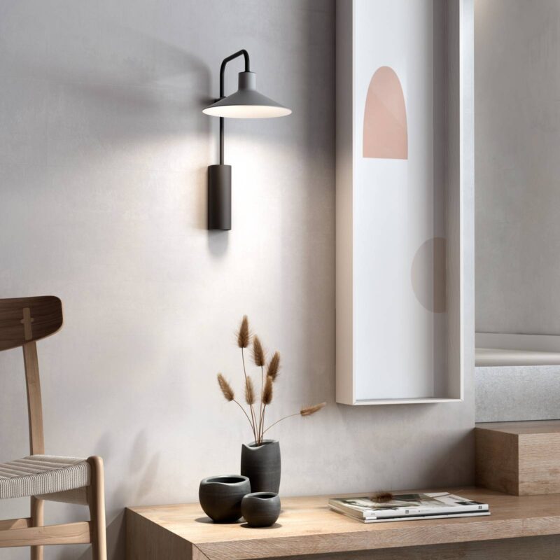 Nástenné svietidlo Platet A02 so širokým kovovým tienidlom, zásuvkou E14 a vypínačom Nástenné svietidlo Platet A02 upúta pozornosť svojím jedinečným dizajnom, pričom dizajn je absolútne nadčasový a univerzálny. Podlhovastý nástenný držiak, štíhla tyč a lievikovitý kovový tienič so širokým otvorom – to sú komponenty nástenného svietidla Platet A02. V spodnej časti nástenného prvku je integrovaný vypínač na priame ovládanie svetla. Koncept nástenného svietidla pochádza od Christopha Mathieu, skúseného dizajnéra, ktorý navrhuje svietidlá pre celý rad renomovaných výrobcov a vytvoril sériu Platet pre španielsku značku svietidiel Bover. Do tienidla bola integrovaná objímka E14, ktorú možno osadiť LED žiarovkou s výkonom do 5 W. Svetlo svieti smerom nadol pod širokým uhlom cez široko otvorené tienidlo s jasným vnútorným povrchom. Okrem súkromných obytných priestorov je nástenné svietidlo Platet A02 ideálne aj na osvetlenie komerčných priestorov, napríklad v hoteloch alebo reštauráciách.