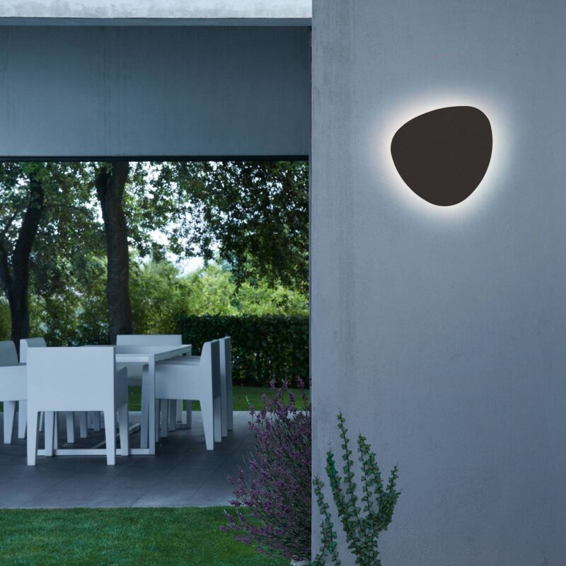 Nástenné svietidlo LED Tria z hliníka na vonkajšie použitie Svetelné výtvory španielskeho výrobcu značky Bover sa vyznačujú na jednej strane vynikajúcou kvalitou a na druhej strane jednoduchým dizajnom, ktorý nikdy nestráca na aktuálnosti. Vonkajšie nástenné svietidlo Tria od dizajnéra Rubéna Saldaña v sebe spája presne tieto vlastnosti. Má hliníkovú dosku s organickým tvarom pripomínajúcim kamene, ktoré sa nachádzajú napríklad pri mori. Za touto doskou sa ukrýva najmodernejšia technológia LED, ktorá produkuje teplé biele svetlo, ktoré sa šíri okolo svietidla. Dosku možno tiež otáčať o 350°, takže sa mení hra svetla a tieňa. Tria inšpiruje redukovaným vzhľadom, ktorý sa zaobíde bez rušivých detailov a začlení sa do najrôznejších štýlov – od moderného až po rustikálny. Poznámka: Nástenné svietidlo je stmievateľné (TRIAC).