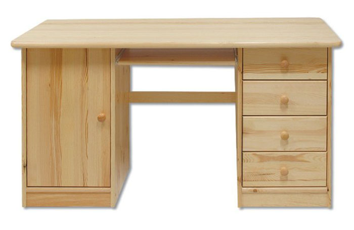 BR115 písací stôl so skrinkou a 4 zásuvkami. Farebné prevedenie – prírodná borovica. Za príplatok ponúkame možnosť namorenia na odtieň dub, jelša a orech. Nábytok Drewmax je vyrobený z kvalitného borovicového masívu. Pozor!!! Produkt má špeciálnu povrchovú úpravu na ochranu proti škodcom. Preto v prípade ak máte záujem o produkt, ktorý chcete dodatočne namoriť, treba v objednávke uviesť: požadujem produkt bez povrchovej úpravy.