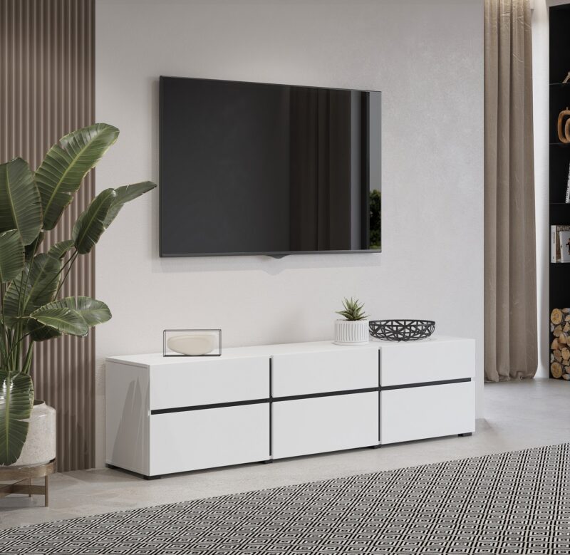 TV stolík BRENDON patrí do atraktívneho sektoru BRENDON, vďaka ktorému si vytvoríte obývačku podľa vašich predstáv. Tento moderný televízny stolík je vyrobený z kvalitných LTD dosiek, ktoré sa jednoducho udržiavajú. Disponuje tromi výklopnými priehradkami a tromi zásuvkami.Farba: biela, čierna.Rozmery:šírka: 180 cmvýška: 48 cmhĺbka: 40 cmDodávame v demontovanom stave.