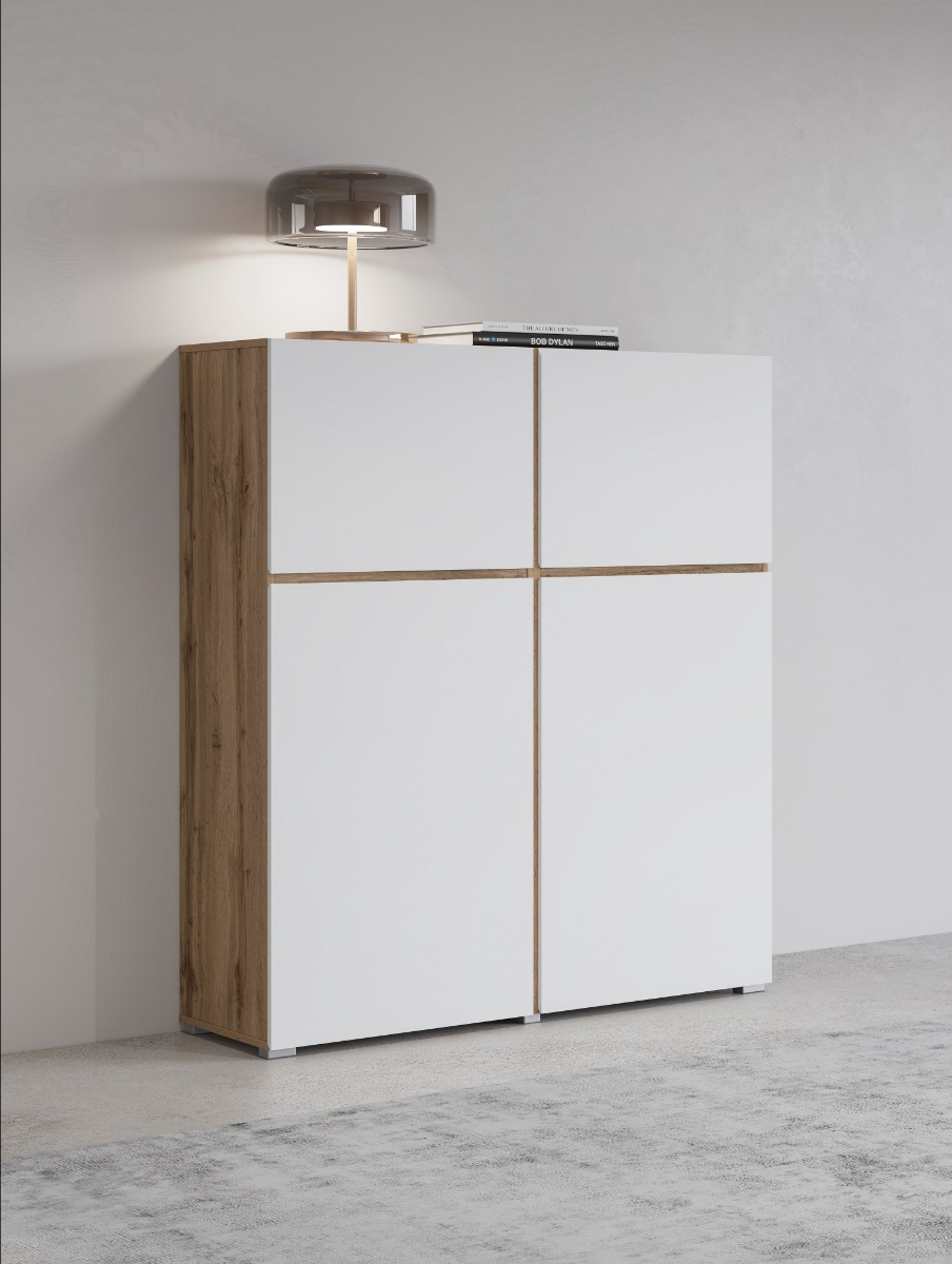 Komoda BRENDON – elegantný úložný priestor pre vašu obývaciu izbuKomoda BRENDON je skvelým riešením pre organizáciu vašej obývačky. Vďaka svojmu modernému dizajnu a praktickému usporiadaniu ponúka dostatok úložného priestoru pre všetky vaše potreby.Hlavné vlastnosti produktu:Typ tovaru: KomodaVhodné do miestnosti: Obývacia izbaMateriál: LTDFarba: dub Wotan/bielaRozmer: 139 x 119 x 40 cmVybavenie: Dvierka plnéPočet dvierok: 4Dodatočné informácie: Dodávame v demonte.Vďaka štyrom plným dvierkam umožňuje komoda efektívnu organizáciu a ľahký prístup k uloženým veciam. Vysoko kvalitný materiál zaisťuje dlhú životnosť a jednoduchú údržbu. Moderný vzhľad dodá vášmu interiéru elegantný nádych.