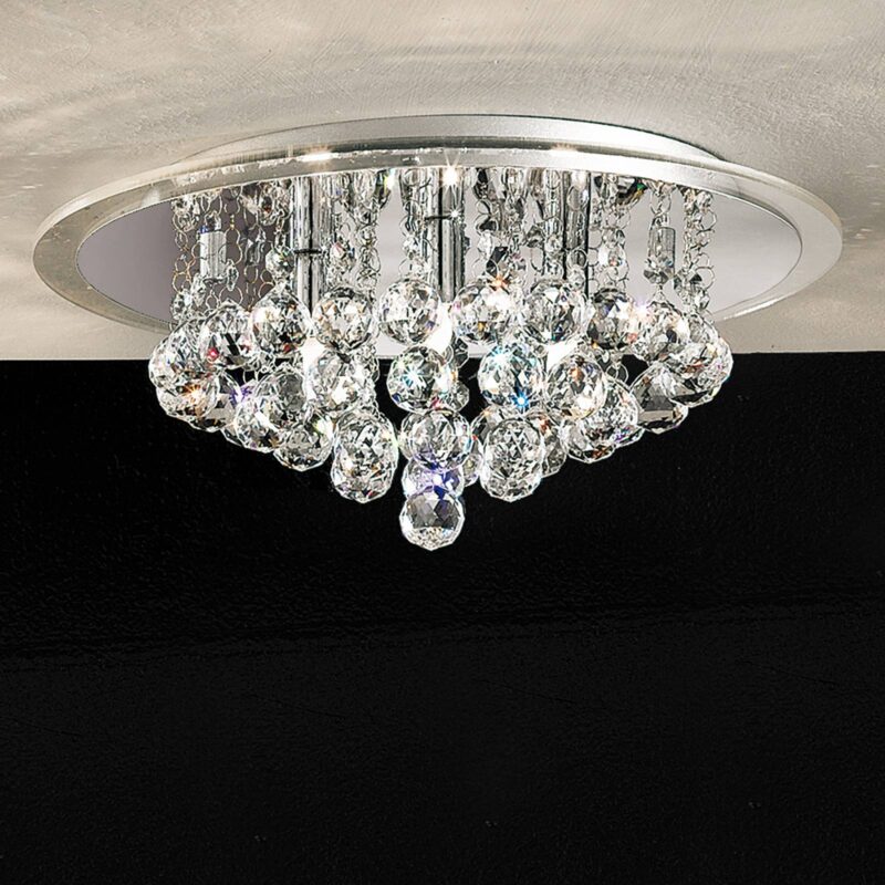 Brilantné stropné svietidlo Despina s visiacimi krištáľmi Toto elegantné stropné svietidlo Despina svieti, dokonca aj keď je vypnuté. Bohatá krištáľová dekorácia na pochrómovanej zrkadlovej stropnej doske s halogénovými žiarovkami zabezpečuje optimálne osvetlenie s pôsobivými svetelnými odrazmi.
