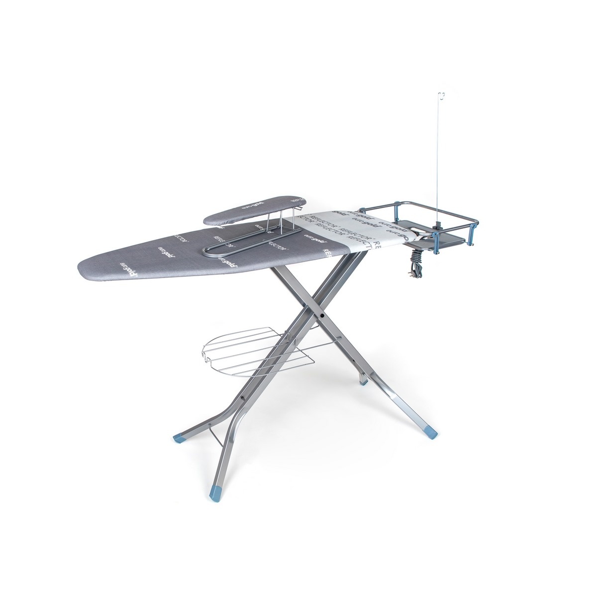 Žehliaca doska Professional s rozmermi 130 x 48 cm je vybavená kovovou doskou Mash, ktorá dobre prepúšťa paru a zaisťuje, že bielizeň zostane suchá. Stabilná konštrukcia žehliacej dosky zaisťuje bezpečné žehlenie. Pevná žehliaca doska umožní ľahké žehlenie aj veľkých kusov bielizne.Žehliaca doska je vybavená integrovanou elektrickou zásuvkou, odkladacím priestorom pre parnú žehličku a plochou pre vyžehlenú bielizeň. Súčasťou žehliacej dosky je tiež rukávnik – mini žehliaca doska, ktoré vám uľahčia žehlenie úzkych rukávov.Galvanizovaná konštrukcia zaisťuje dlhú životnosť žehliacej dosky. Nastaviteľná výška dosky je 73 až 99 cm. Priemer nôh 35 x 20 mm, hrúbka materiálu 0,8 mm.