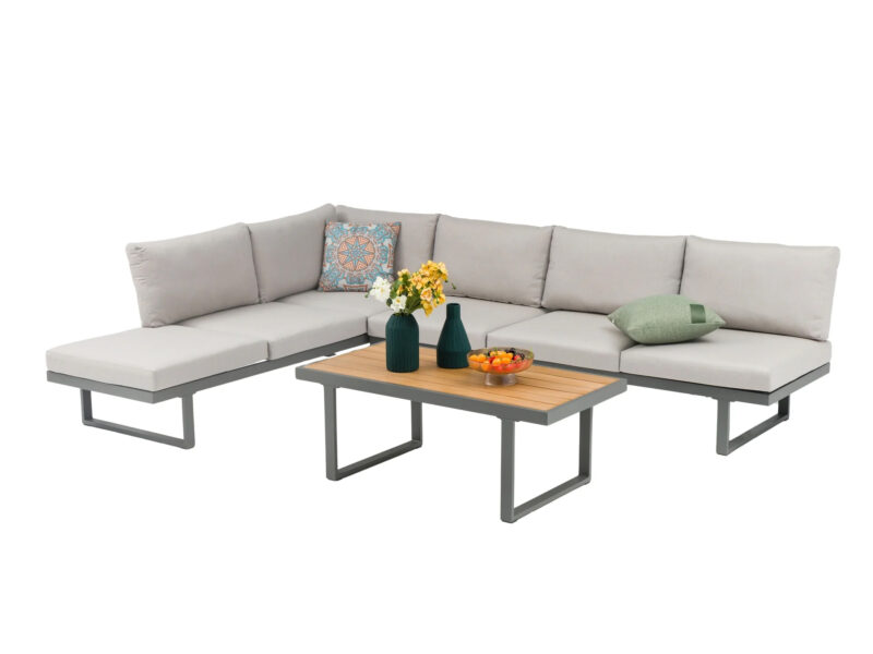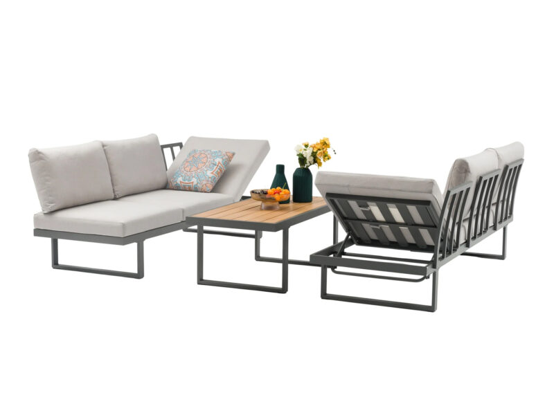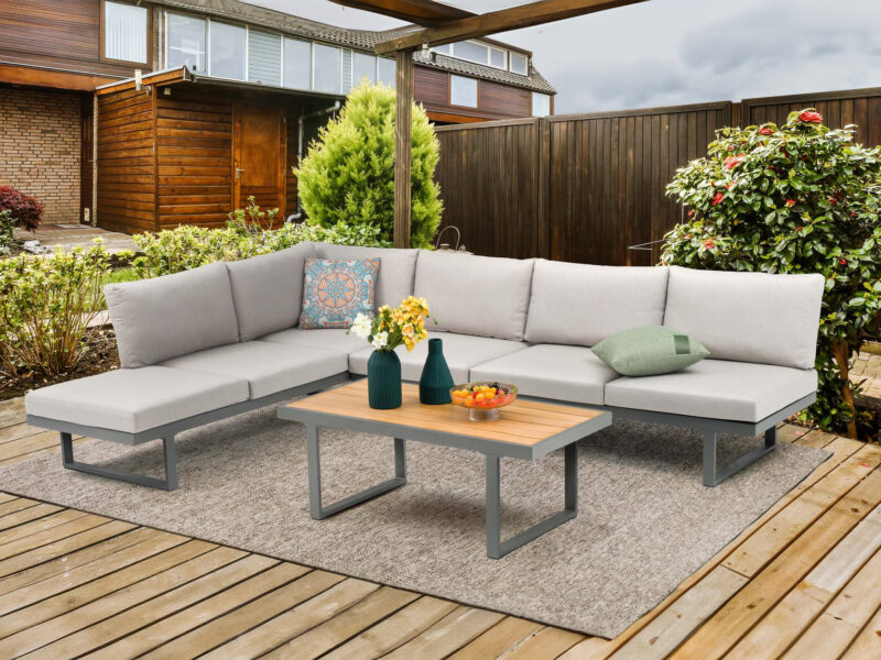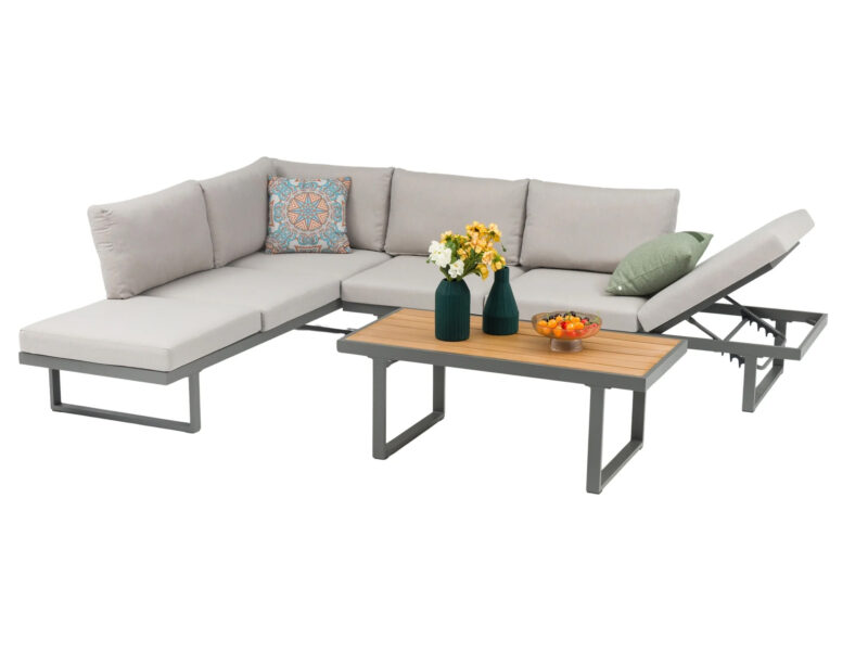 Sedacia súprava Bristol je skvelou voľbou pre chvíle pohody na terase či v záhrade. Ponúka pohodlné sedenie, rohovú lavicu s funkciou sklápania a stôl s polywoodovou doskou v teakovej farbe, ktorá vnáša do exteriéru príjemný prírodný nádych.